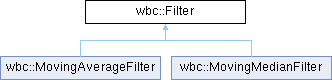 Implemented in wbc::MovingAverageFilter, and wbc::MovingMedianFilter.
